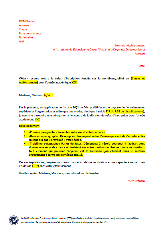 Cette fiche info développe la question des recours (contester le déroulement d’une épreuve ou de la délibération, contester une refus d’admission, Contester un refus d’inscription)